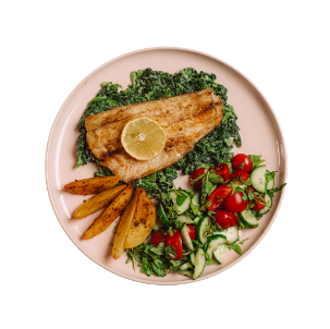 Basmati, Ispanak Sote, Fırın Patates, Bezelye, Biber, Domates, Salatalık, Susam, Tofu Izgara