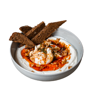Strained Yogurt, Garlic, 2 Eggs, Olive Oil, Dill, Ground Red Pepper, Walnuts, German Rye Bread