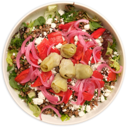 Purslane, Dill, Parsley, Mint, Buckwheat, Artichoke Heart, Turkish Curd Cheese, Roasted Pepper, Onion, Pickles, Green Lentils